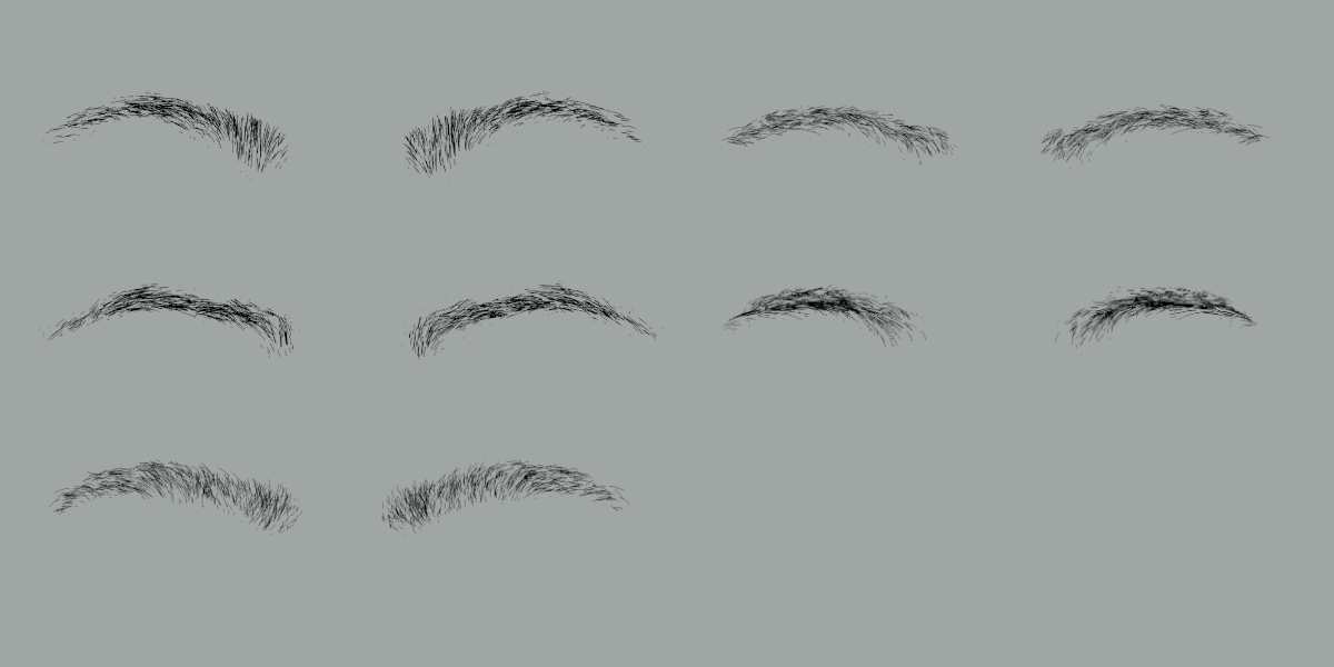 re-work 5 eyelash and 17 eyebrow hair assets.